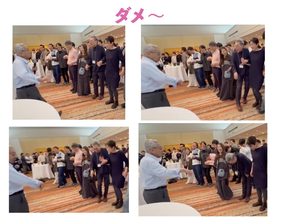 懇親会、輪になってのダンスでは 西先生より「塩ちゃん、ダメ〜」っと、足の運びを突っ込まれる。^^; 400名の踊りを止めてごめんなさい。